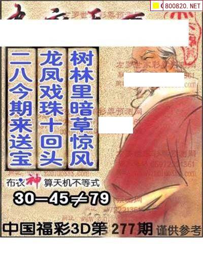 上一篇:福彩3D 24276期佐罗图一掌经预测图