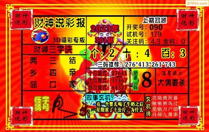 上一篇:23300期: 财神说彩3D全套图版