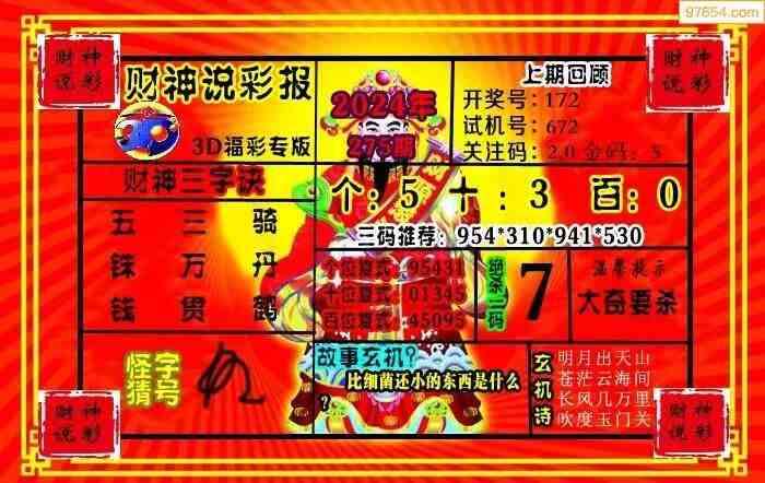 上一篇:24274期: 财神说彩3D全套图版