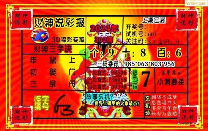 上一篇:24301期: 财神说彩3D全套图版