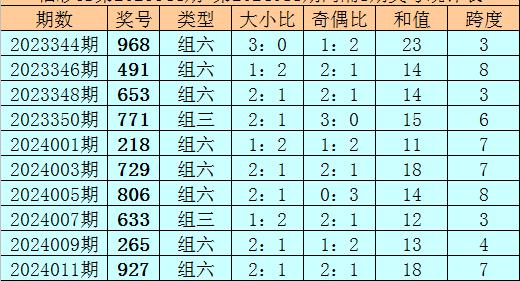其中大小比2:1,奇偶比2:1,和值14,跨度9。