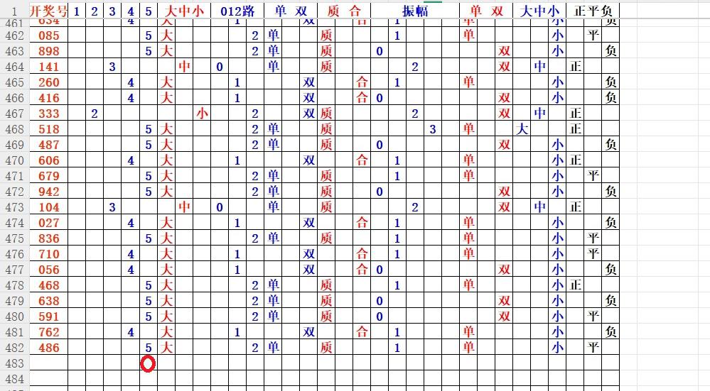 如上图56,大中小分析,中号3456出胆码,最低1个胆码,重点34