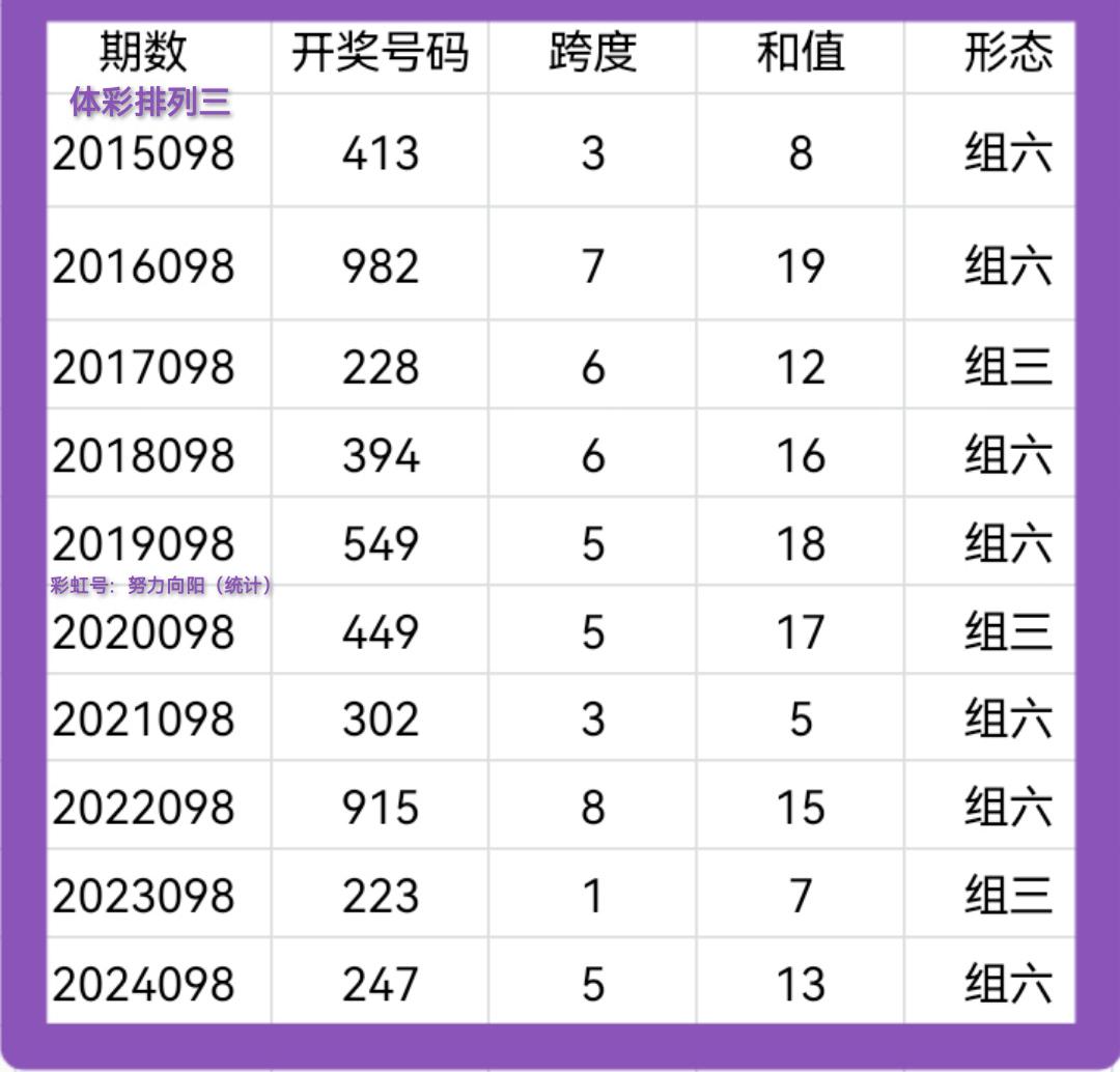 >【福彩3D】【体彩排列三】第2025098期号码简析到此结束,个人观点,仅供参考,详细选号分析及方案推荐请去向阳的个人主页会员文章区查看,谢谢您的观阅!