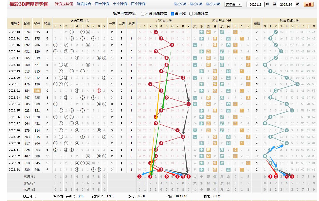 最近看到好多人只看推荐的数字号码,实际像分析的内容也可以参考的,用 和值 跨度 ,用7码配号 。