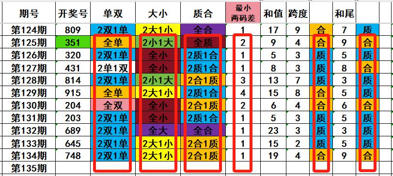 4,最近10天当中,最小两码差1开出6次,最小两码差2开出2次,最小两码差3开出1次,
