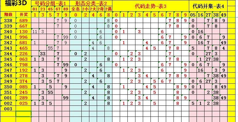 从出现频率来看,38相对较为活跃。基于这7期的表现, 对于003期,38仍有较大可能出现,可重点关注,49有出现的机会;