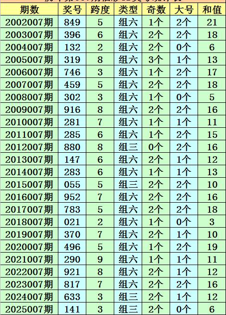 历年第007期福彩3D同期奖号为:849-396-132-319-746-459-302-916-281-285-880-147-283-055-952-783-021-370-496-290-921-817-633-141。