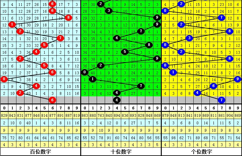 个位分析:最近7期个位分别开出奖号:2、8、0、1、9、6、4,个位振幅为9个点位,本期注意个位号码走大,关注一码7。
