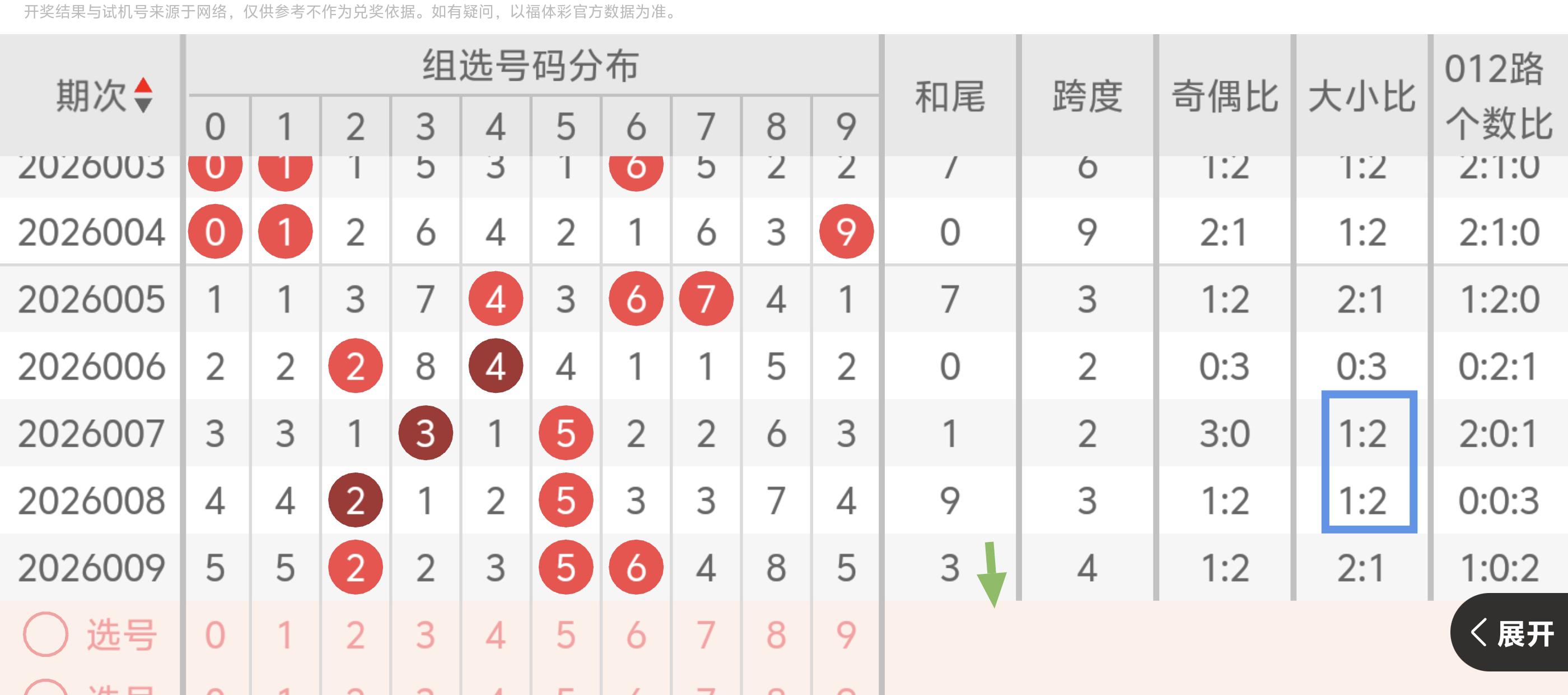>福彩3D和尾:近二十期的和尾走势整体呈走大的趋势,上期开出和尾3,本期也会有走大的趋势,可以关注和尾4-8。