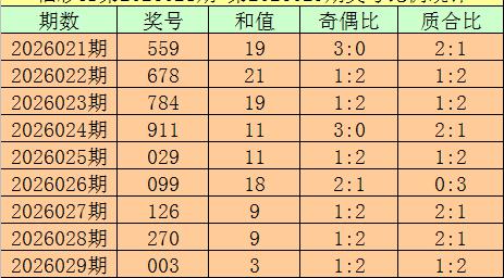 开奖回顾:福彩3D第2026029期:奖号为003,奖号质合比为1:2,大小比为0:3,跨度为3,类型为组三。