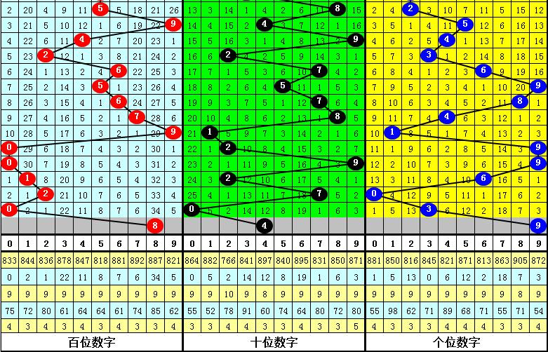 百位分析:上期出现号码0为:小号、合数,在连续9期开奖中,百位分别为:大号、质数:5;大号、合数:6;大号、质数:7;大号、合数:9;小号、合数:0;小号、合数:0;小号、质数:1;小号、质数:2;小号、合数:0,其中大号频次较低,合数开出频繁,百位本期预计开出大号、合数。