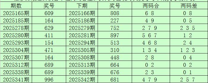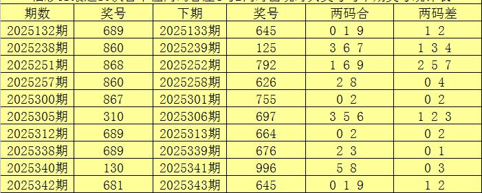 从以上统计可以看出,十个位两码合差7与1同时出现之后其下期两码合差表现最热的4个分别为:0125,本期十个位两码合差可以参考这四码中的数据。