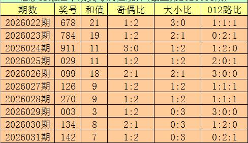 开奖回顾:第2026031期福彩3D奖号为142。奖号形态为组六,大小比为0:3,和值为7,奇偶比为1:2,012路比为0:2:1,跨度为3。