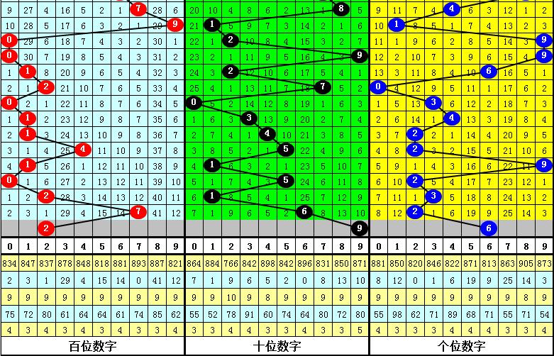(2)在号码频次方面,开出个数最少的三个号码为:8、3、5,一般来说这三个号码不会同时出现;开出个数最多的四个号码分别为:2、1、9、4,本期看好这四个号码中包含1-2个开奖号码,注意号码2。