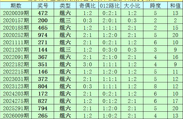 上期回顾:第2026036期福彩3D奖号为762,奖号特征为:组六,奇偶比1:2,012路比1:1:1,大小比2:1。