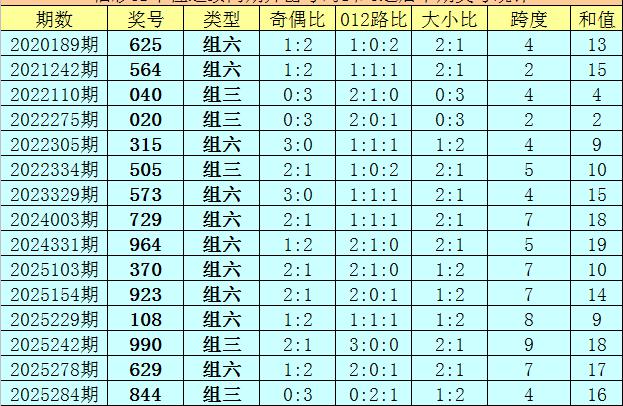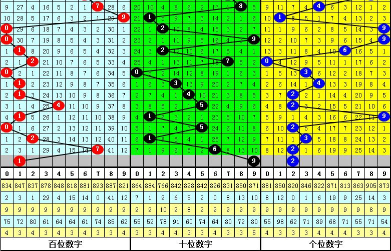 十位号码:前两期十位分别出现奖号1-6,历史上福彩3D连续前后分别开出号码1-6的现象共开出86次。在十位1-6的现象出现时,最近15期其下期分别开出号码:625-564-040-020-315-505-573-729-964-370-923-108-990-629-844;