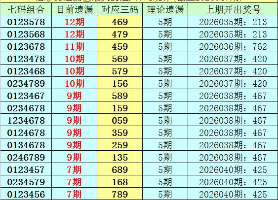 1.截止第26047期,七码组六遗漏最大的是:0123578、0123568,当前遗漏12期。