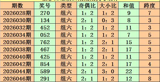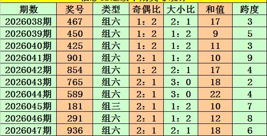 上期回顾:福彩3D第2026047期奖号:936。组六、大小大、奇奇偶。