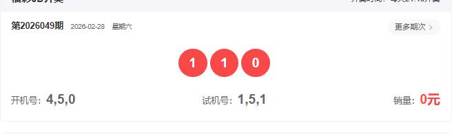 2026049开奖号码: