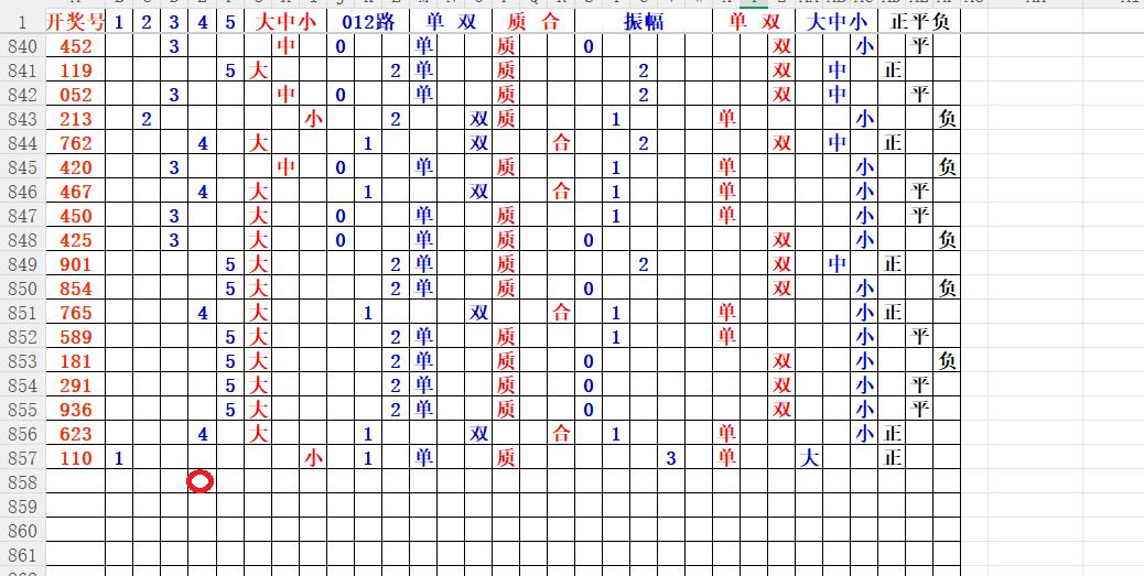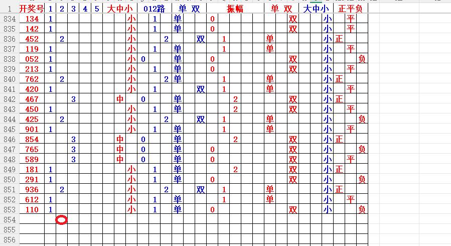 如上图56,大中小分析,中号3456出胆码,最低1个胆码,重点34