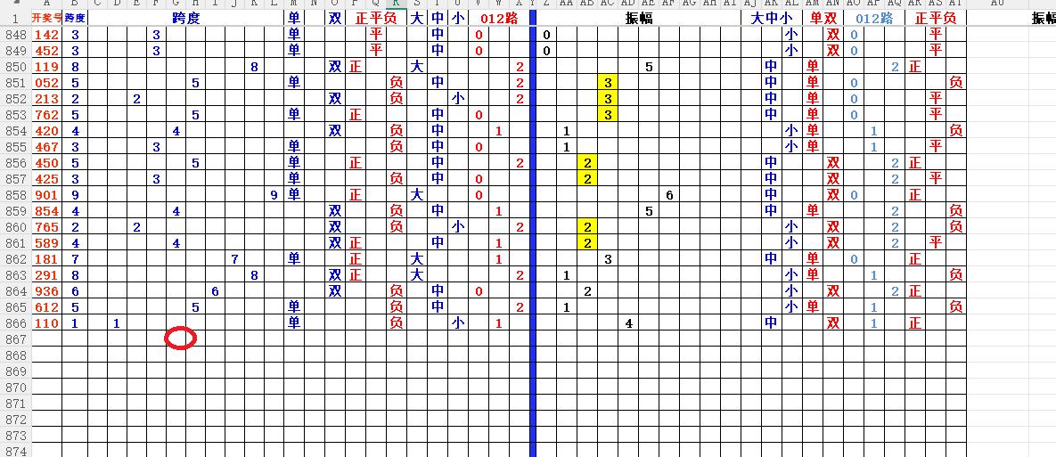 跨度:就是开奖号,最大数减去最小数所得的数,就是跨度。