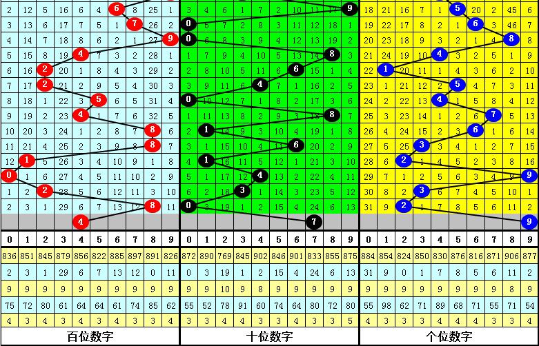 百位分析:百位上期开出号码8,历史上该位号码8出现了891次,最近100期号码8出现次,上期间隔3期再次出现。