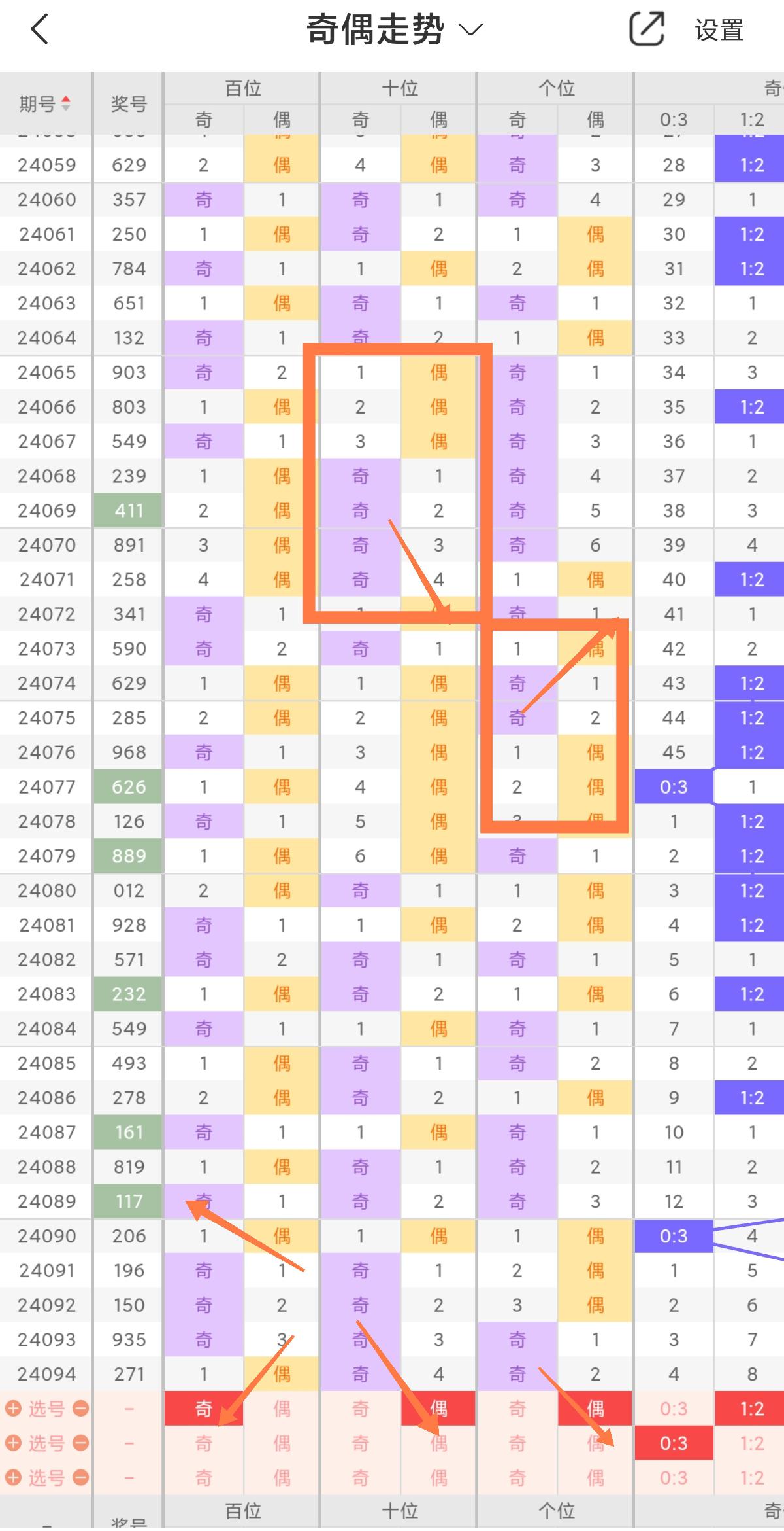 奇偶方面优先考虑两偶一奇或全偶。出号顺序为优先奇偶偶,偶偶偶。替换成定位号码为:
