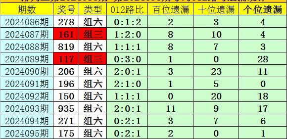 开奖回顾:排列三第2024095期奖号为:175,类型为组六,号码012路比为0:2:1,百十个位号码直选分别遗漏2期、0期和1期。