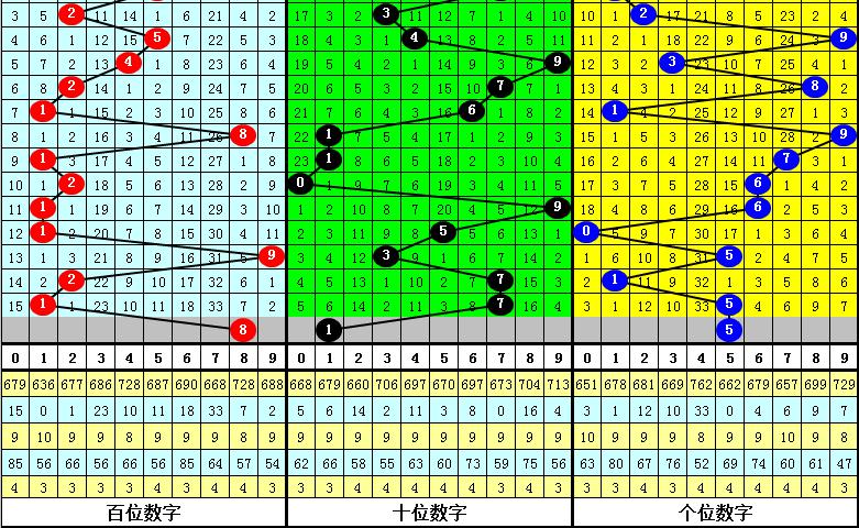 百位分析:该位上期开出号码1,最近10期该位012路比为1:5:4,其中1路号码间隔2期再次出现,本期可以放弃1路号码,注意2路号码开出,参考8。