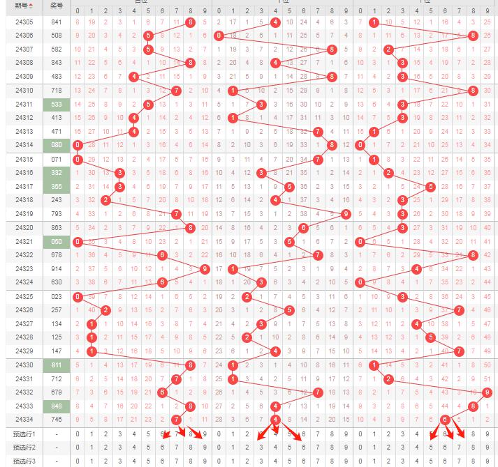 上期百位开7,根据走势图,本期关注02468