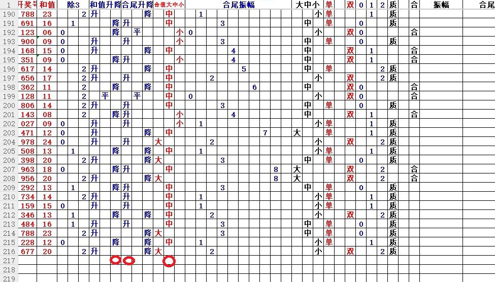 如上图3,和值升平降分析,和值降的概率大,小于20和值。