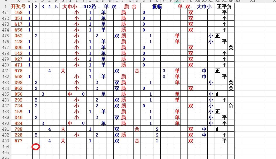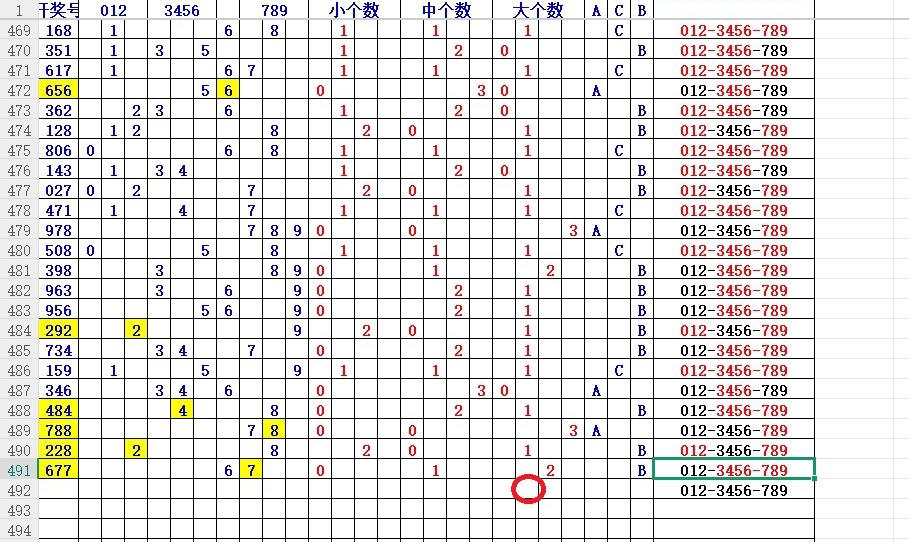 如上图7,012路分析-1路出号的概率还是很大,本期可以从2路号入手5代表89。