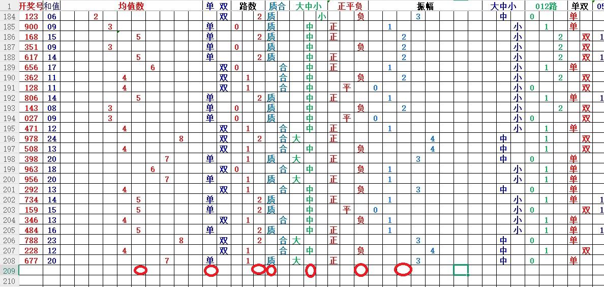 均值:就是开奖号每各数的总和除3,然后得到的余数,如果不够整除可以+1,-1,直到被整除得的数就是均值