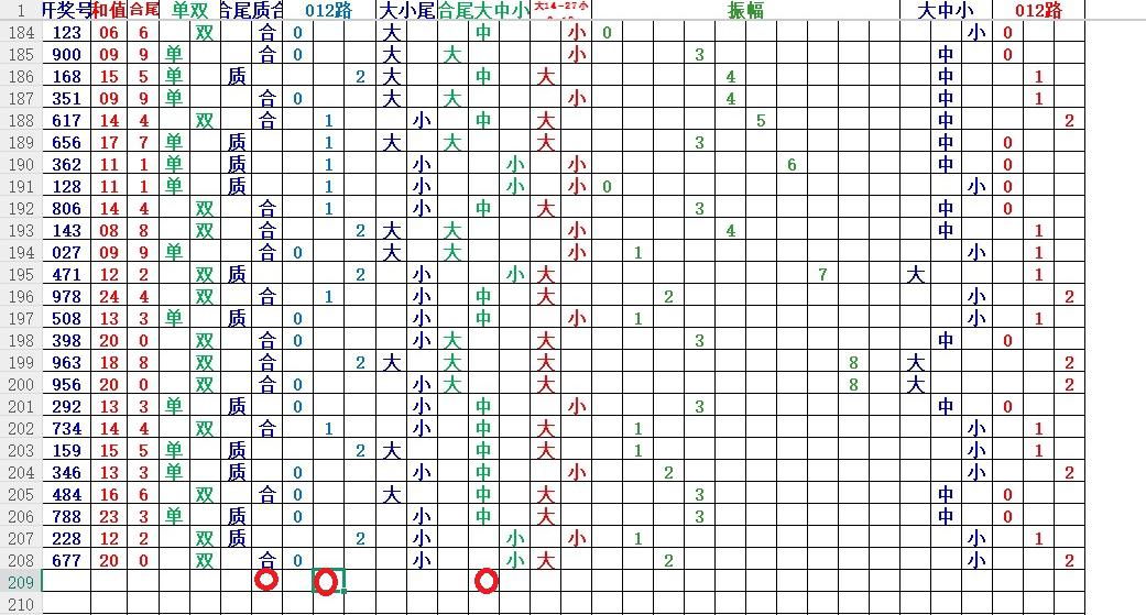 如上图3,和值012路分析,12路和值出现概率大 13 14 15 16 和值。