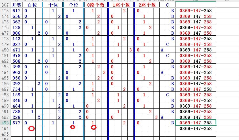 如上图56,012路分析0路出号的概率还是很大,本期可以从0路号入手做胆0369中选;看好369胆码。