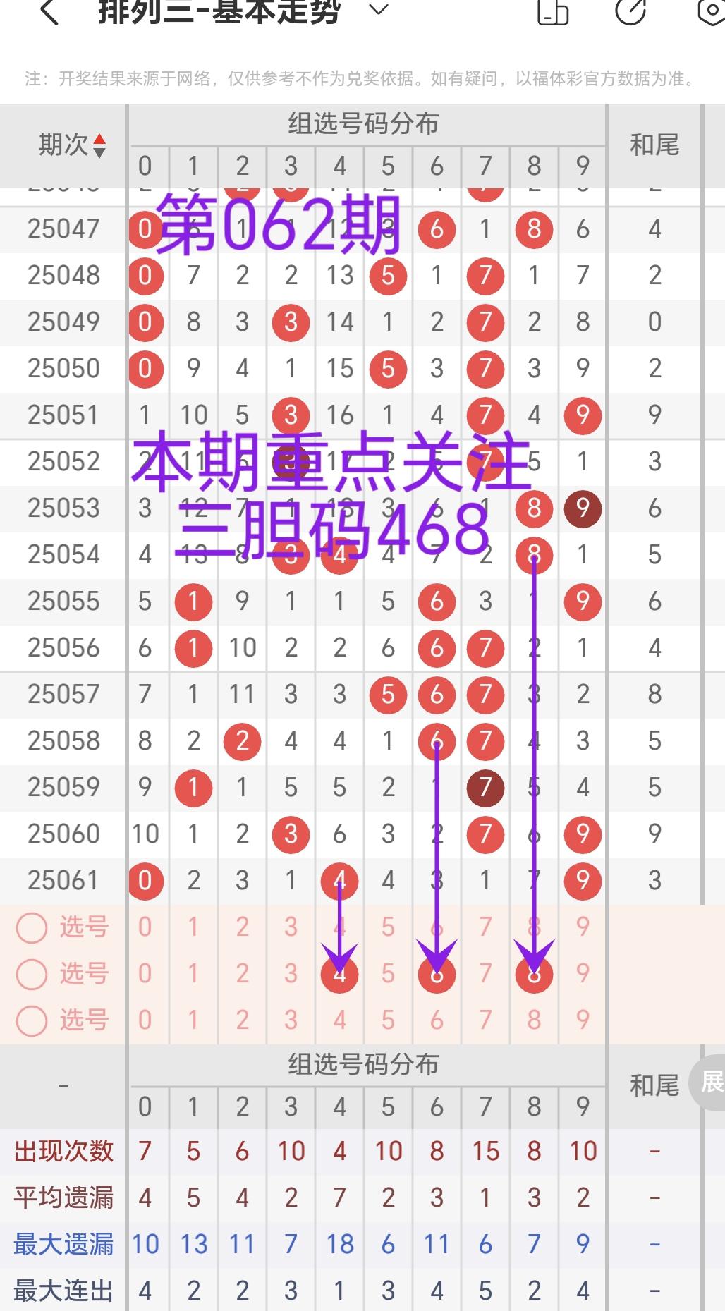 >排列三第062期每日胆码、定位复式分析