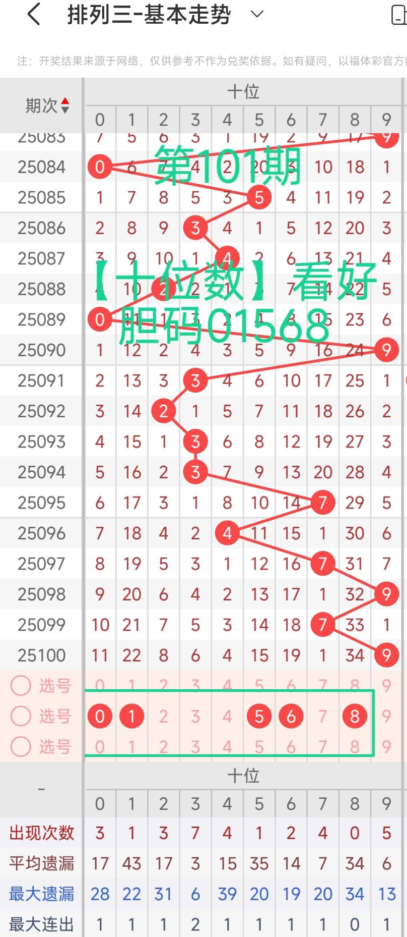 >四、总结分析与推荐 综合以上各个方面的详细分析,并结合我个人的判断,为大家带来排列三第25101期的精心推荐,希望能助力大家选号: