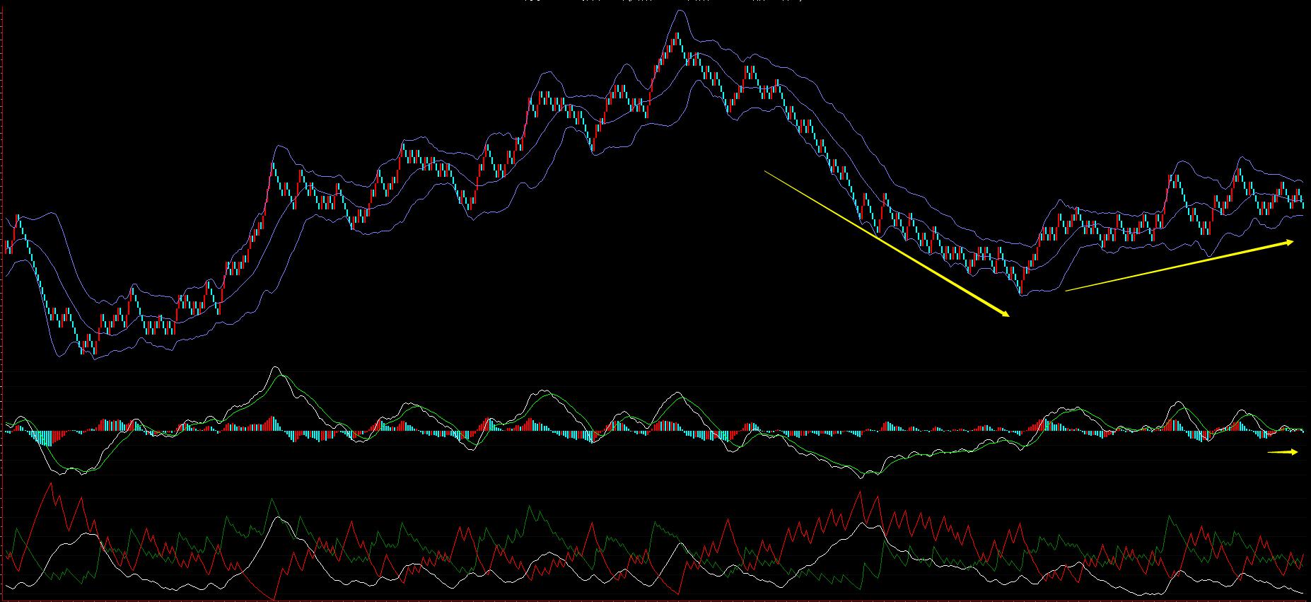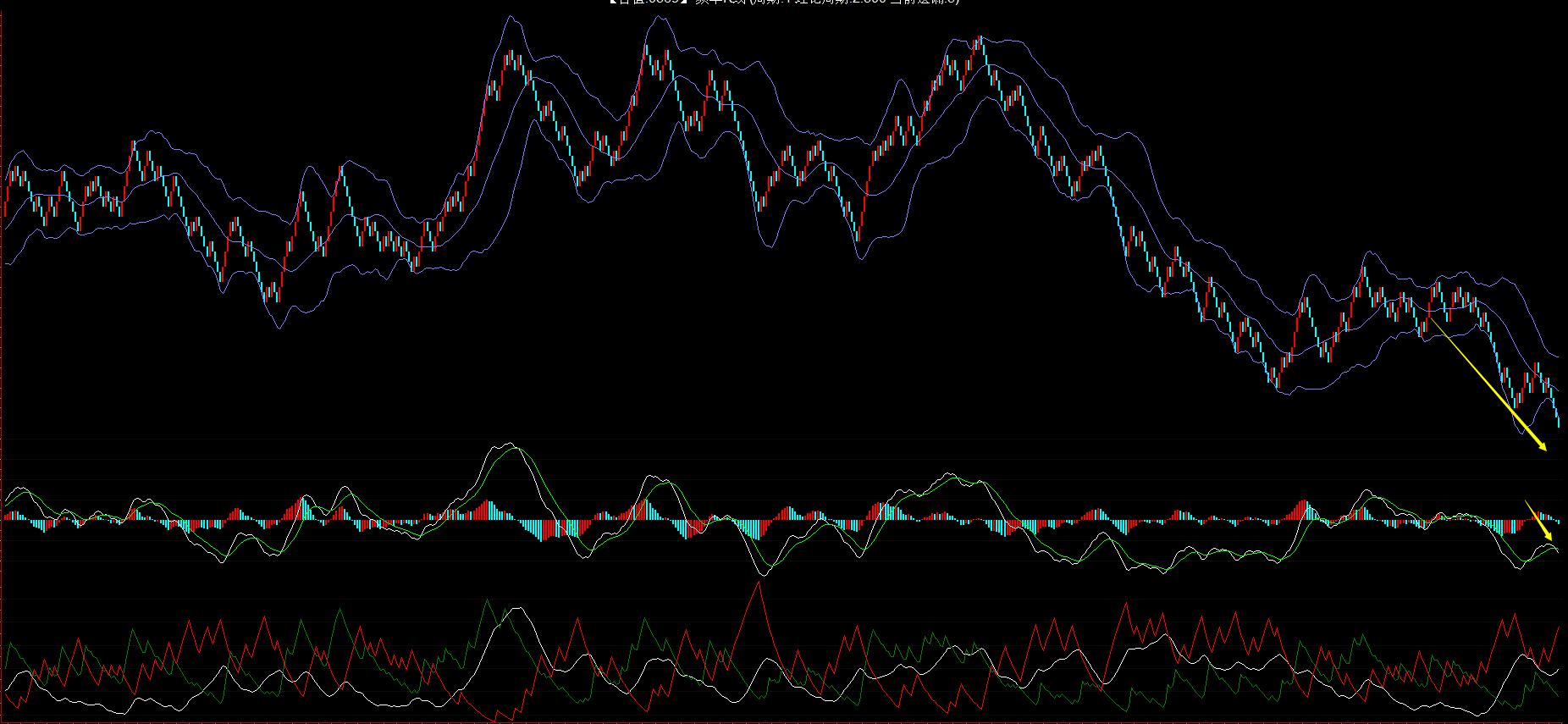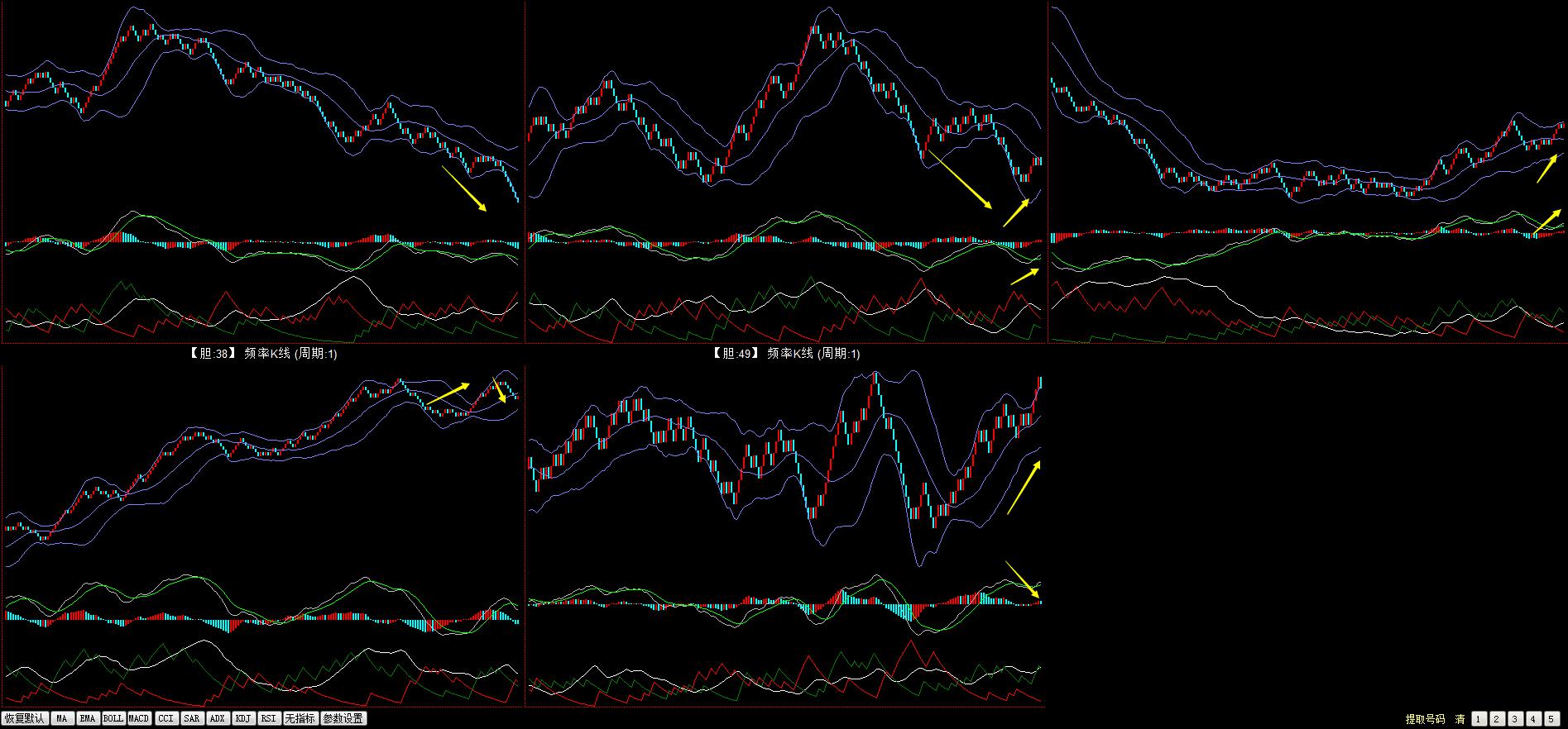 图中上涨趋势的对码分别有16,27,49,其中16对码的长短均线交叉形成底部金叉,这是介入信号,27对码同样也是金叉的形成,后期必然形成一波上涨,49对码上行K值偏高,与上一个顶峰平行,则上涨压制出现反弹,可能短期会出现遗漏回补状态,下跌的对码分别有05和38,其中05对码当前遗漏8期,历史最大遗漏12期,近期在最大遗漏范围是有可能开出的,近几期要重点关注,38对码为高位下跌趋势,虽短期出现回补,但是下跌的方向暂时不会发生变化。