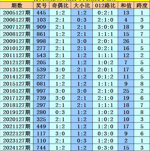 本期为排列三第2025127期开奖,历史上排列三第127期已开出了20期奖号了: