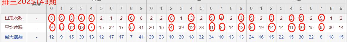 2025142期开奖号码343,我们可以看出近30期百位3出现4次,十位4出现3次,个位3出现2次。