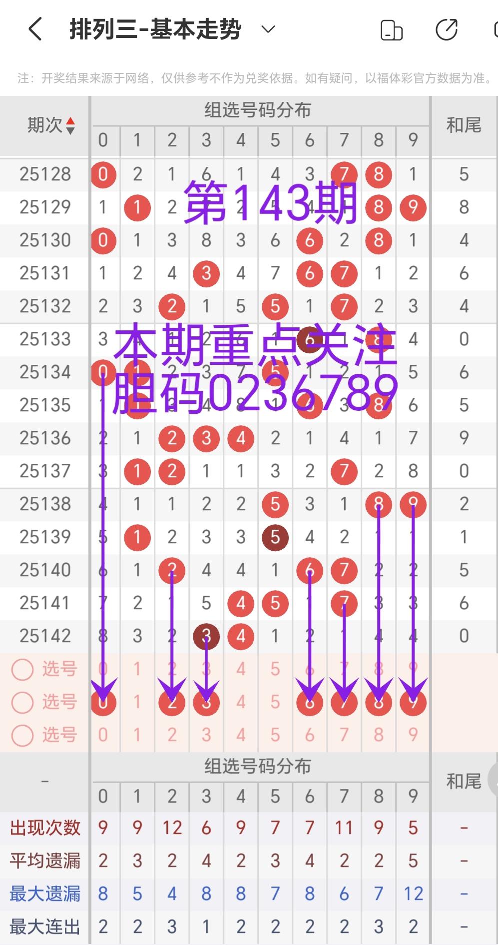 >排列三第143期每日胆码、定位复式分析