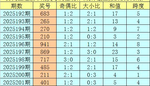 上期回顾:排列三第2025201期奖号:401。类型:组六,奇偶形态:偶偶奇,大小形态:小小小,和值:5,跨度:4。