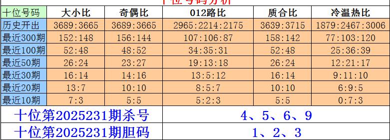 排列三十位第2025231期杀号:4、5、6、9