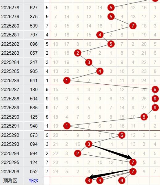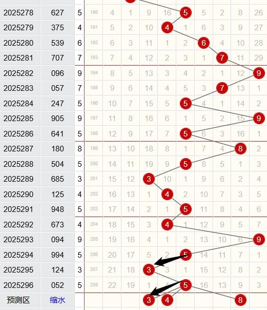 上期跨度为5,近5期跨度开出情况:第25292期开出4,属于偶数,1路号码,金属性;第25293期开出9,属于奇数,0路号码,金属性;第25294期开出5,属于奇数,2路号码,土属性;第25295期开出3,属于奇数,0路号码,木属性;第25296期开出5,属于奇数,2路号码,土属性;