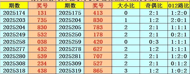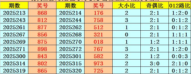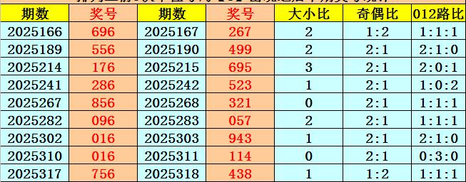 十位号码:十位上期开出偶数、大号、0路号码:3,历史上十位号码3共开出765期,上一次出现在第2025318期,上期奖号遗漏值为6期。
