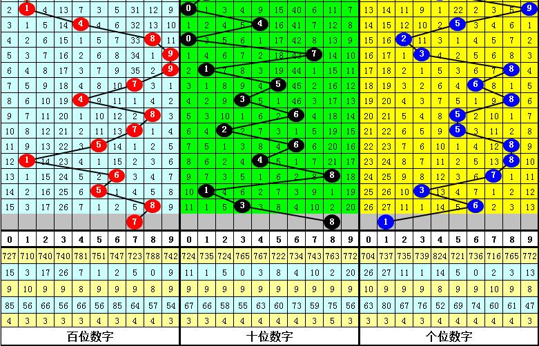 在百位前9次出现号码8之后,下期百位分别开出奖号:1-7-5-3-0-7-5-9-7,其中开出号码个数奇偶比是8:1,大小比是6:3,012路比是3:4:2。