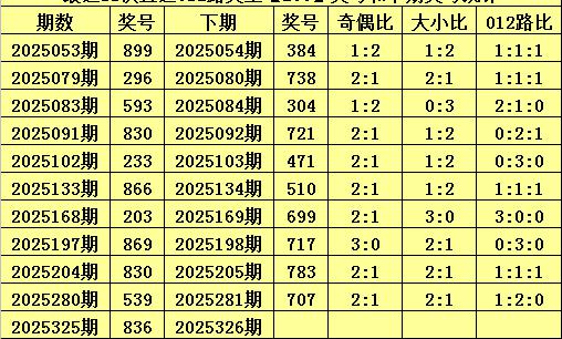 上期回顾:体彩排列三第2025325期开出奖号:836,其012路比为2:0:1,奖号012路类型为:200。