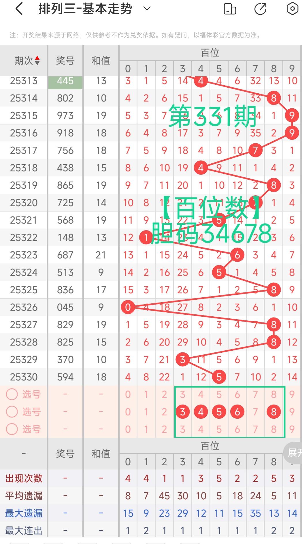 >排列三第331期的精心推荐,希望能助力大家选号: