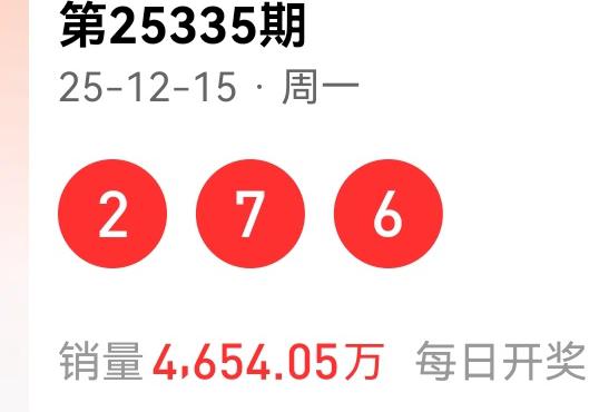 体彩排列3上期开奖号码为276,组六类型,和15,跨度5。
