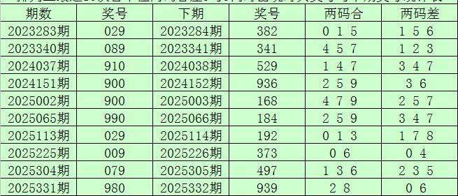 排列三第2025340期奖号两码合差分析: